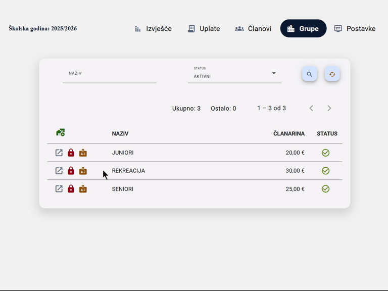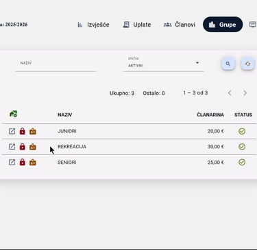 Svi podaci – osobni podaci, status članstva, članarine i aktivnosti – nalaze se na jednom mjestu, lako dostupni i uvijek ažurirani.
