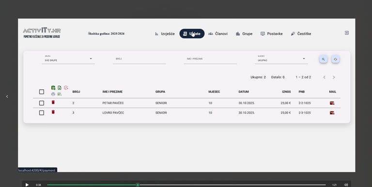 Activity.hr je sustav koji udrugama i klubovima omogućuje jednostavno vođenje članova, naplatu članarina, evidenciju aktivnosti i pristup svim podacima na jednom mjestu – kad god vam zatrebaju.